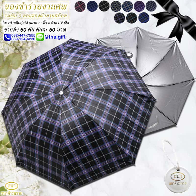 ของชำร่วยงานศพ ร่มพับ 3 ตอน ซองผ้าลายสก๊อต 06