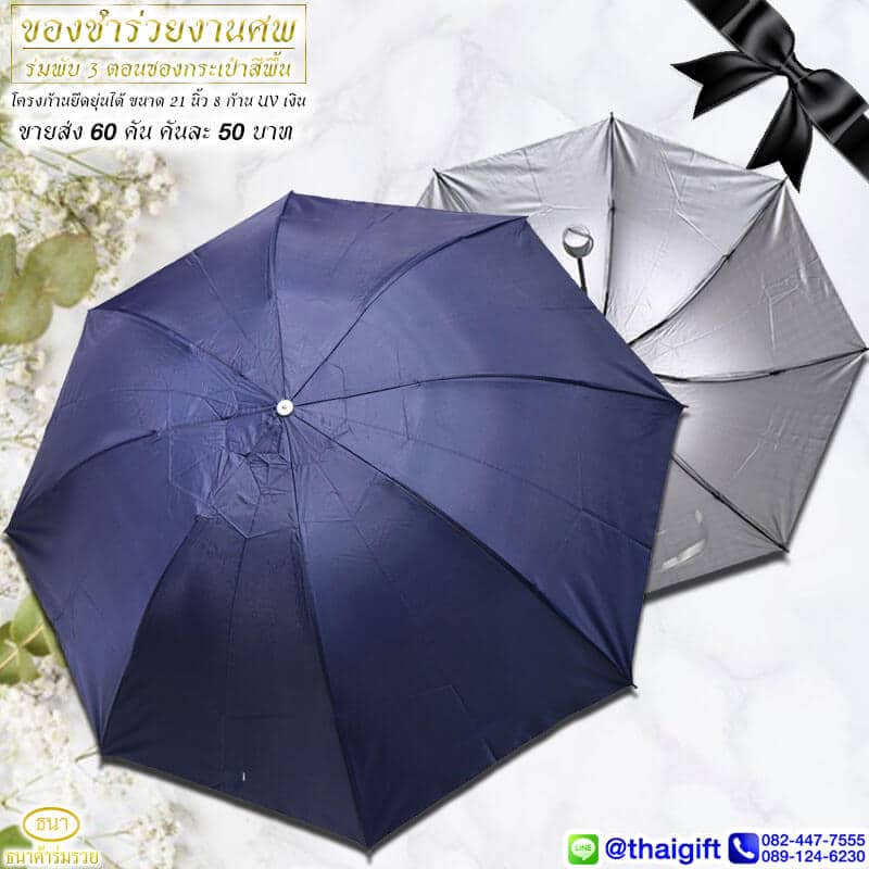 ของชำร่วยงานศพ ร่มพับ 3 ตอน ซองกระเป๋า กรม